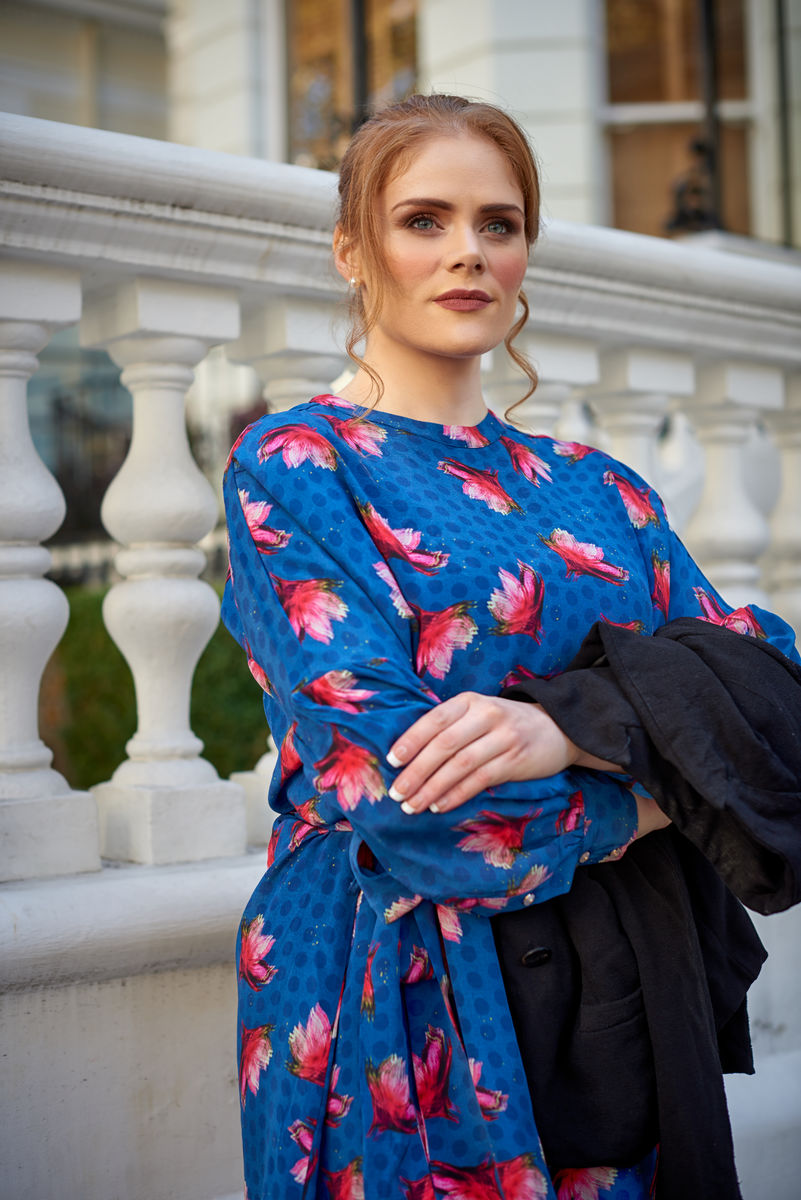 Our Tangible Wishes pattern incorporating a stunning blue polka dot with a pink blurred floral style pattern is a unique twist on this wardrobe classic.