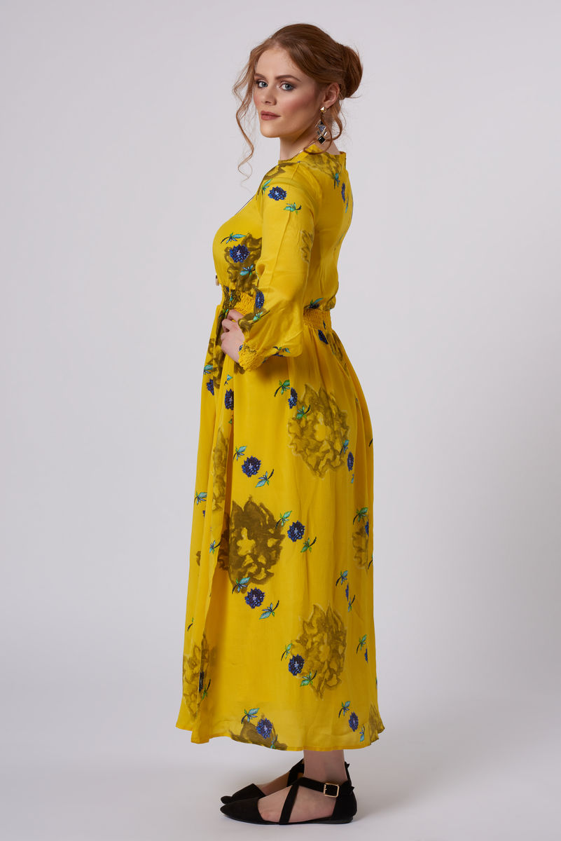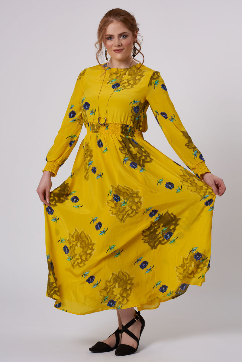 Moon Flower is a striking yellow print complemented with a delicate floral pattern.